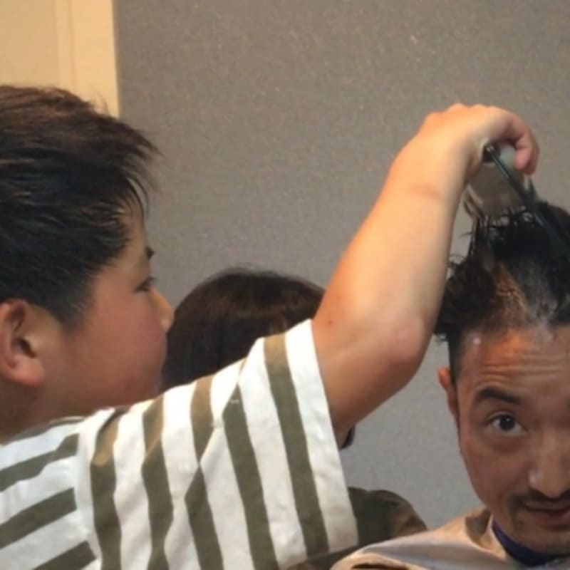 写真はちょうど一年前。パクリの副作用で脱毛が始まり、スキンヘッドにするための剃髪式の様子。今はフサフサです。笑