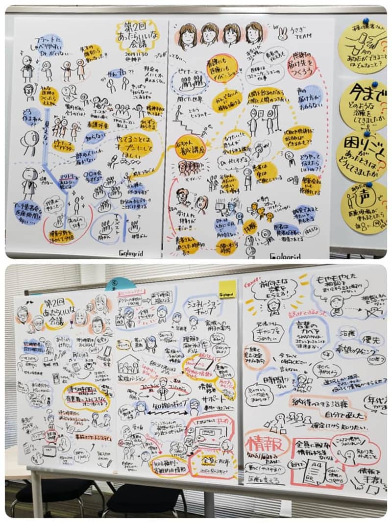 グラフィックレコーディングです。専門職の方が来て下さって、イラストを描きながら進行してくれました。