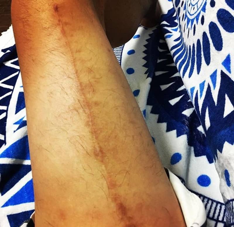 2015年 8月 家族の事を思い、同じ治療を受けられるのであればと新潟大学医歯学総合病院にて15時間にも及ぶ全身麻酔手術にて摘出に成功この時の手術により顔面神経を摘出した為、右の顔半面が麻痺してしまう
