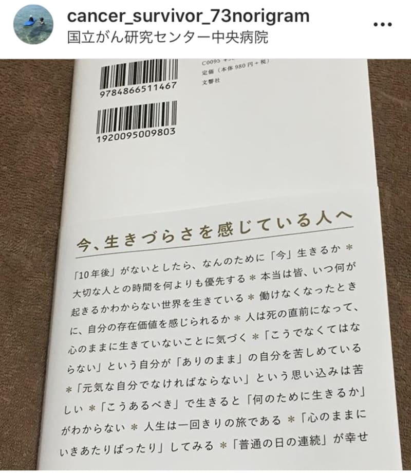 といいましても立派な読書感想文は書けませんが(^^;、この本を読んだ事でがんに罹患した方がどう感じどう思うのか、自身もがんを宣告された時から今日に至るまで、自身の考え方が、どう移り変わっていったのか、今後どう向き合い生きていくのかの指針を改めて考えさせられる内容といった感じでした。