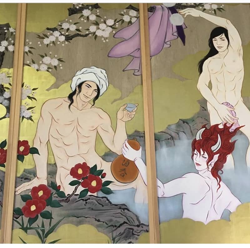 現在、境内の外壁には歴史上の人物達がイケメンで描かれていて何故か大体、服着てなくて裸で男同士で絡んでる…!?