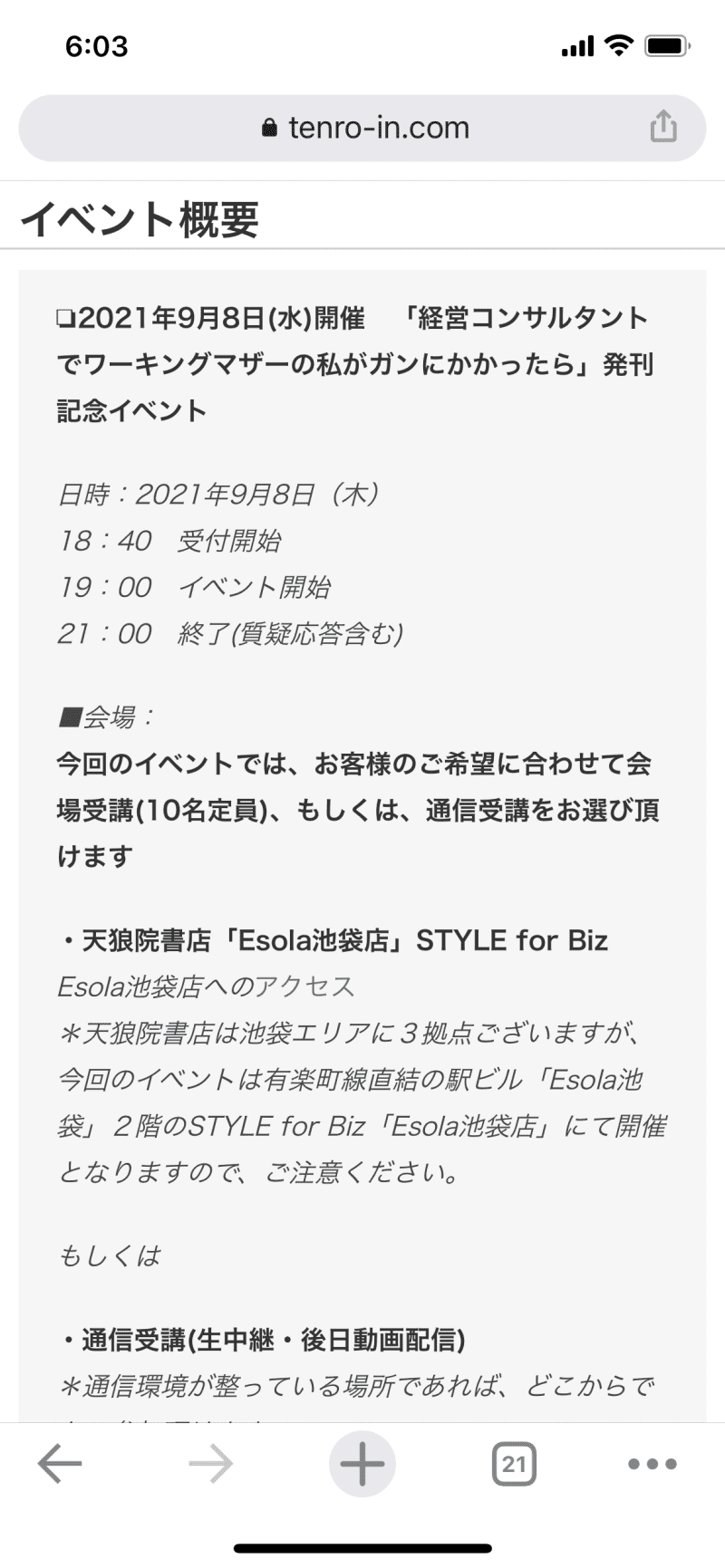9月8日19時から出版記念イベントを、天狼院書店で開催していただきます。120分喋るので、今頑張って準備しております。?オンラインでも参加できるようです。当日は本にかけなかった闘病中の経験や反省点、忘れられない思い出などについてお話させていただきます。