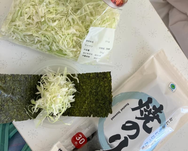キャベツを海苔で巻いて
