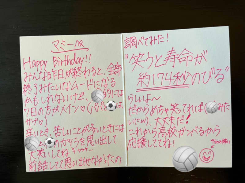 今日は私の誕生日だから、今朝娘から手紙をもらった。