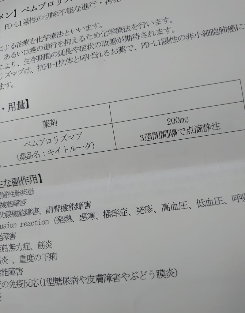 ついに恐れていた、抗がん剤と免疫チェックポイント阻害薬のみの2択になりました。