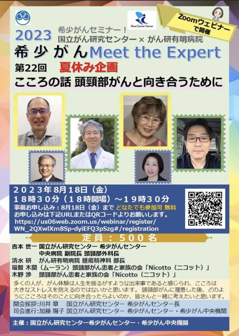いつも頭頚部や希少がんの啓発活動にご尽力くださり、ありがとうございます。