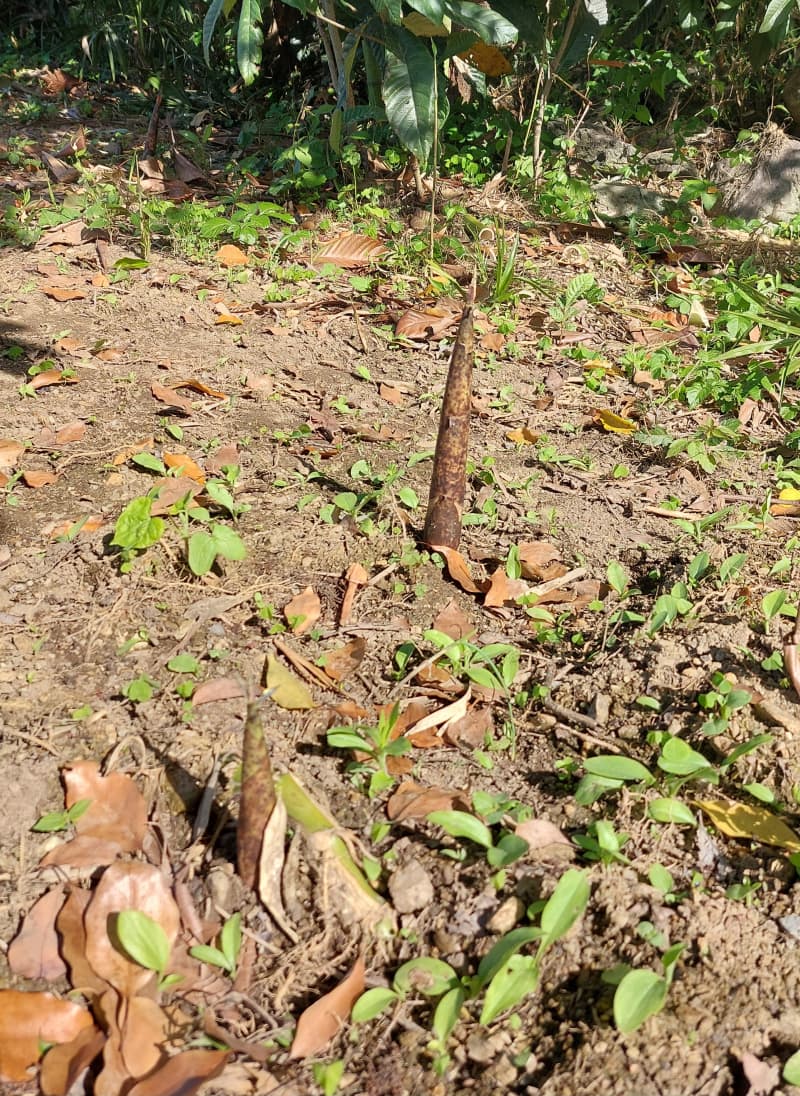 隣の雑木林から我が家の畑に破竹がにょきり。