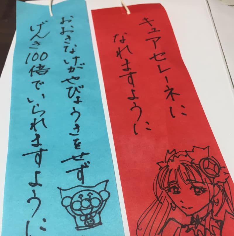 保育園で毎年1人一枚、クラス毎の笹に飾ってくれる短冊。 年長になると本人記入用、保護者記入用の1人2枚に。 昨年と比べて、親子で願いがリアルになってきた。 4月半ばの退院翌日から登園自粛してきたけれど、6月に要請解除されてからも、コロナ含め感染症予防での登園自粛。 ・感染症怖い ・子ども達いないとメンタル落ち込むからもっと怖い ・2人は休園喜ぶ でも ・持ち上がりで娘を担任してくれている先生に、竹馬の練習もしてるし6月からは全員登園してるし連れておいでと電話で言ってもらい ・放射線治療後帰宅してしんどくても、横になると2人して起きろと暴力的で、全然横になれない ・最終学年なのに私の理由で休ませてていいの? ・コロナ渦中に始まった階下からの足音の苦情。平日は朝と夜しか居なかった3人が24時間在宅してるせいだろうなぁ。 ・弾むように歩く息子に注意し続け、だからと言って夫の休日以外は外出も0で、2歳児に酷すぎるよなぁ。 と、どちらがいいのが迷いながら悩みながらの2カ月半でした。 今日、延期続きの娘の発達相談に夫も母も急遽一緒に行くと言ってくれて、久しぶりに登園することにしたら、娘は昨夜から大興奮! 先生も友達も大歓迎してくれて…こりゃ一日だけなんて言えないわ。 毎年恒例、年長になると竹馬の練習に取り組んで、その効果を10月の運動会で発表。 1人ずつ、それぞれの高さの竹馬で半トラック歩く間、BGMのように担任の先生からのメッセージが涙ながらに読まれるので、観ている保護者は他学年でも涙涙… あぁ、○年後には…と自分の子のイメージを重ねながら、目の前の年長さんの努力と雄姿に声援と拍手を送り、年長に進級すると「あぁ、ついに竹馬の練習が始まるんだなぁ」と思ってた。 娘は、私にそっくりな運動音痴で、さらに完璧主義者で自信がないものに取り組むのがとっても苦手。 寝返りも、歩くのも、遊具も、何でもみんなより随分遅くて、その原因は能力以上にメンタルだったから、竹馬もすご〜く心配だった。 の、に、私理由の休園。 1人だけ参加させていない竹馬練習。 梅雨の晴れ間の今日、初めて竹馬練習に参加した娘。 まずは両手で持ってジャンプ、の練習だったそうで、 「がんばりマメできたかなぁ」とか言いながら手をチェックしてました( ̄∀ ̄) これからいっぱい練習してマメ作って、いっぱい転んで、失敗しても大丈夫なんだってこと体験して、友達と励まし合って、そして願わくば乗れるようになって自信つけてほしいなぁ。 息子は去年の願いが叶って元気100倍なので、少しシンプルにまとめてみました。 もちろん、元気100倍な息子が私は可愛くてたまらないんだけどね、ちょっと手を焼いて困ってる家族もいるしね(゚∀゚)