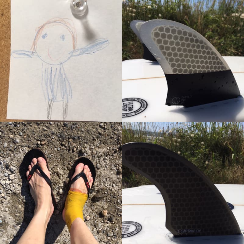 新潟県 / その他 / ステージ3日記 父の日の週末父の日の週末は久しぶりにサイズのある波でサーフィンと娘から似顔絵のプレゼント?♂️?? イケてるヤツは大体ライダーでお馴染みのCAPTAINFINのツインフィンを終日堪能?? 【感想】 クリステンソンのツインフィンはキールフィンだけど直進性と回転性、双方に優れた操作性の良い万能型? タイラーウォーレンのツインフィンはクリステンソンと比べて、ルース感が無くてカチッとフェイスにハマるシャープな印象といった感じで張った波の日はこちらをつけてサーフィンしたいなって感じました‼️ (※あくまで個人の感想です?♂️) みどりおか接骨院の医院長に脚首しっかりテーピングして頂き、充実した週末を過ごさせ頂きました?✨ (脚首に負担かけてしまいました??また次回宜しくお願いします?♂️?♂️) いやぁ、サーフィンって本当にいいもんですね?✨ (by(故)水野晴郎) そして娘よ、髪の毛多目に似顔絵を描いてくれてありがとう?