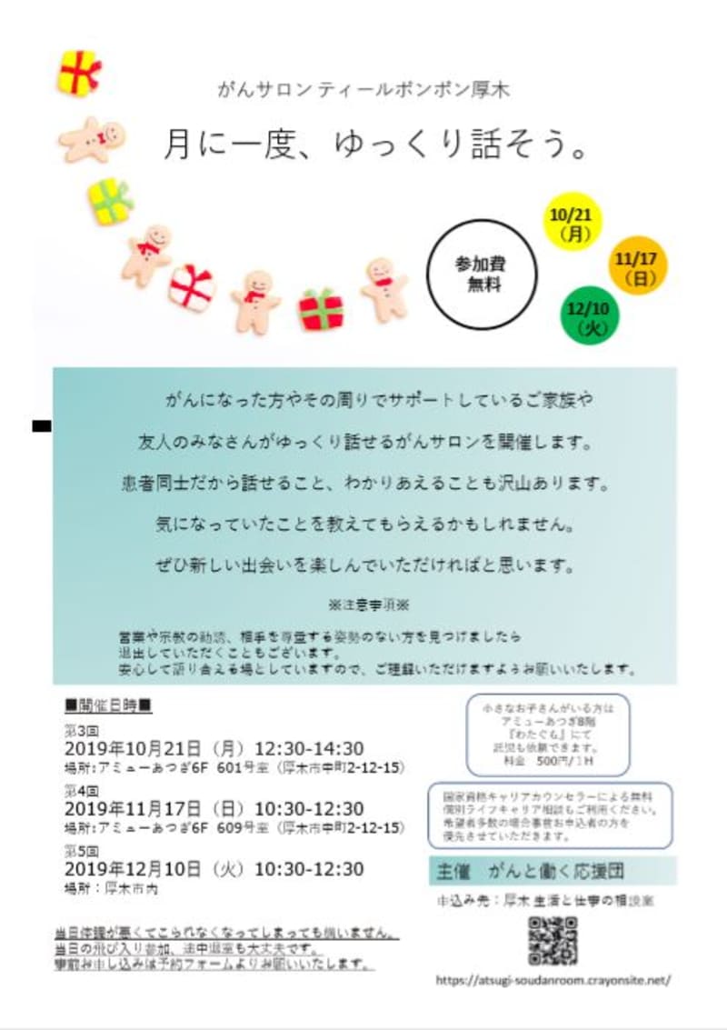 まだまだ残暑厳しい毎日ですね、みなさんいかがお過ごしですか。 最近は今までの人生で経験したことのない事を沢山させてもらいました。 やっぱり問題だと感じた人が声を上げ動く、そして一人でではなく仲間を 作って動き続けていく事が大切なんだということを痛感した数週間です。 がんサロンも2回やってみて、本当に良かったと思うことが沢山ありました。 私も沢山の気づきと、元気と、知恵を頂いて両手に抱えきれないほどのお土産を もらった気分になりましたw ということで10月から12月の回も日にちが決まったので またどんな人との出会いがあるのか、話が聞けるのか楽しみにしたいと思います。