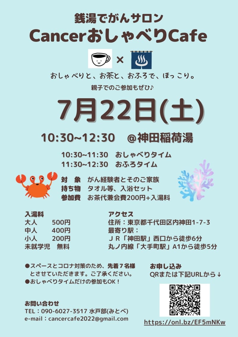 銭湯でがんサロン~CancerおしゃべりCafe@神田稲荷湯 開催案内♨