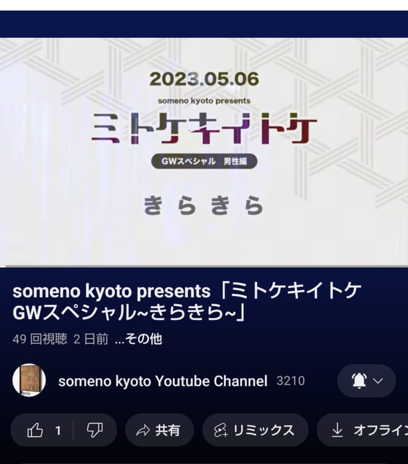 7/7(金)21:00にソメノキョウトのMV大作戦は終了しました。 公式より結果については発表されていませんが、(多分)3位かなと思っています。 上位2組がMVを制作できるので結果としては制作できません。 ですが、沢山の応援で3位になれたこと感謝しかありません。 本当に本当にご協力をありがとうございました? これを機に「きらきら」の音楽がフレンドさんの日常の一部となれば嬉しい限りです。 季節外れですが、この曲も是非。きっと泣きそうになりますよ? 「桜」⇒https://www.youtube.com/watch?v=l30eHTTF5ek