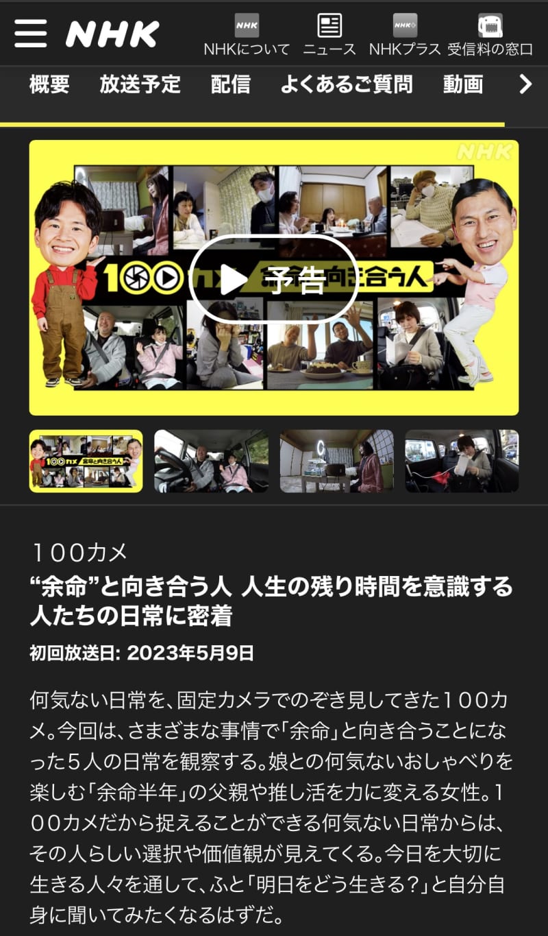今夜は11時からこれを観ようと思ったけど、体力なくて眠いので録画します。 今日の100カメのテーマは「余命」。 「余命」はあくまでも目安。 私も何度も更新しています。 でも、いつ急変してもいいように準備もしてるし、できるだけ後悔のない時間の過ごし方をしたいと思っています。 100カメ https://www.nhk.jp/p/100cam/ts/QP8MPNM1GL/episode/te/WKZ21N8WN6/