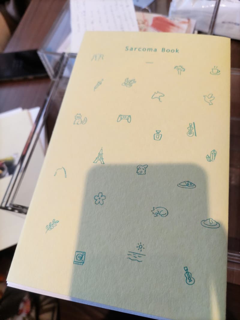 昨日は患者会 肉腫(サルコーマ)の会 たんぽぽの社会科見学(?) お茶会で知り合った吉﨑ゆきえさんの個展に行ってきました? 詳しくは↓ http://blog.ongoing.jp/?eid=1006767 リンク先にもある通り、吉﨑さんも肉腫患者さん。 今回のイベントでは、たくさんのアート作品に加えて、吉﨑さんがSNSやたんぽぽなどを通じて呼びかけた肉腫患者53人の体験記を一冊の本にした「サルコーマブック」も展示されています✨ 想像していたよりも立派な本で厚みも2~3㎝くらいはありそうなボリューム? いまだかつて、これだけの人数の肉腫患者のことを書いた書籍があったでしょうか!? パラパラっと読ませていただいたけど、正に「ひとに歴史あり」といった感じで、ひとりひとりの患者さんの人生の歴史や治療のご苦労が感じられ、肉腫患者さんや医療関係者、製薬企業関係者等の皆さまにぜひ読んでいただきたい内容です? 昨日の時点では、サンプルの展示のみでしたけど、近々販売予定とのことで予約をしてきました? インターネット販売も予定しているそうなので、興味のある方はぜひお問い合わせしてみてください! そして、私も寄稿させていただきました? いやぁ~、子供のころから作文が嫌い&苦手だった私が書いた文章が、数ページとは言え本に載ることになるなんて思いもよらなかった? 本が届くのが楽しみです?