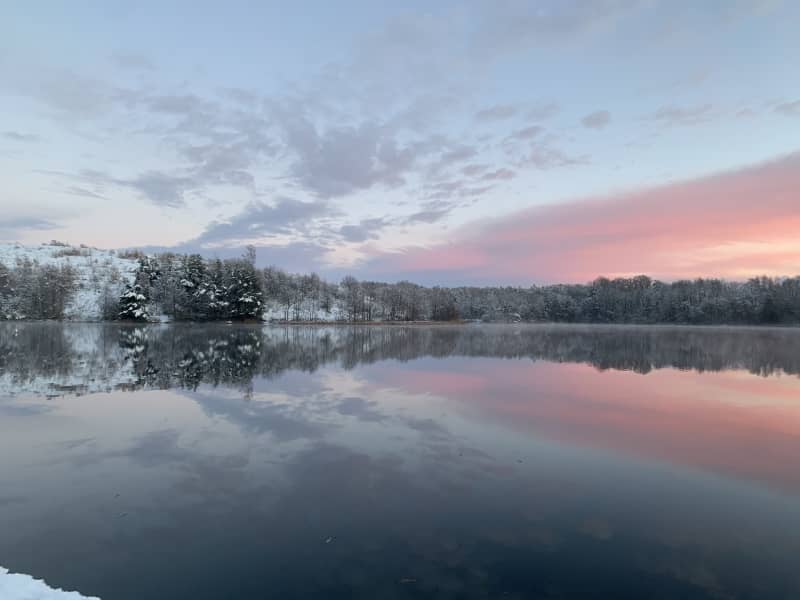突然雪が降って来た。 日勤中、雪は降り続けて、帰るころには雪はやんで雪景色。 あんまりにも美しいので車を停めて湖の周りを歩いて回る。 少しずつ日が落ちてきて最後には美しい夕焼けを見ることができた。 雪が降った後の空気の清らかさが心を和ませてくれる。 どんなに自分を責めても、悔やんでも、なんの足しにもなりやしない。 せめて私がこの美しい景色を素晴らしいと思える感情を持てることを認めて、褒めてあげよう。 今日の良かったことを挙げてみたら、人生まだまだ楽しみがあるぞって思えてきた。 さーてうちに帰ってあったかいスープでも煮込んで、身体をあっためよう。