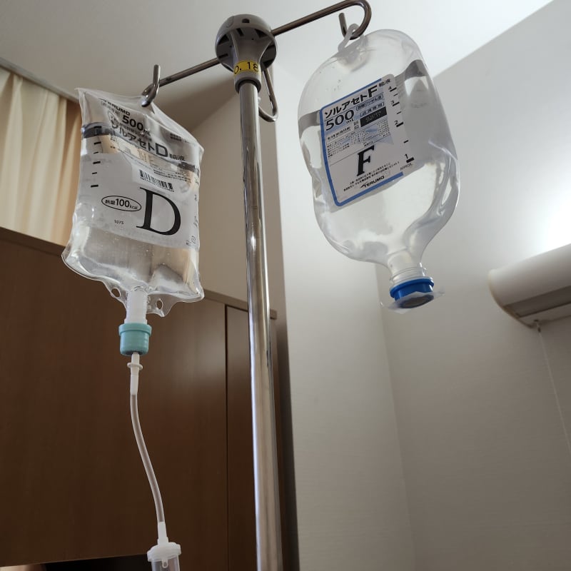 下剤?調整剤?が不味すぎて吐きそう。 アクエリアスの粉ぽい味だけどドロドロでしょっぱすぎるよ…。 夕食のカロリーメイトは点滴の変わりの栄養剤らしい。これも苦手だ…。
