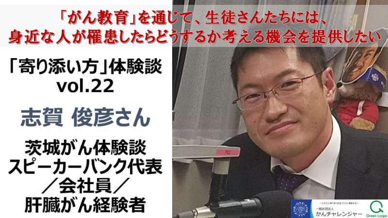 千葉県 / 中咽頭がん / ステージ4日記 とっしーさんにゲスト登場いただきました。「寄り添い方体験談」vol.22は、CP会員(ハンドルネーム・とっしー さん)の志賀俊彦さん(茨城がん体験談スピーカーバンク代表/会社員)にお越しいただきました。 昨年度から正式に始まった学校でのがん教育。その数年以上前から講師を務めている志賀さんより、リアルながん教育や子どもたちとのかかわりなどをお聞きしてみました。 志賀さん、有り難うございましたー。 https://youtu.be/RXkMafj4wpE