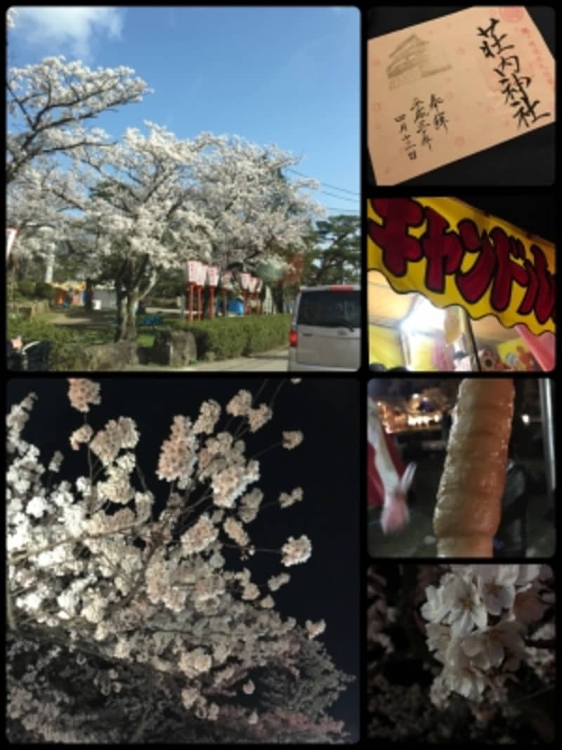 夜桜を家族で初めて見に行きましたが花より団子の我が家でした(^^;)