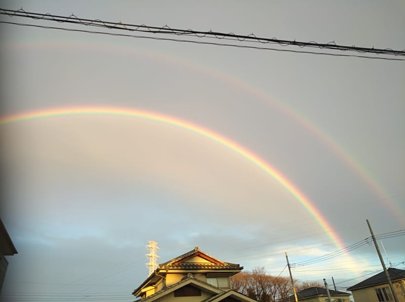 退院後、初の保育園お迎えへ行き 帰ってくると… 二重の虹!