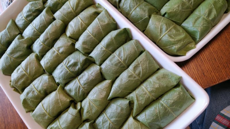2)庭の柿の木の葉で。柿の木寿司