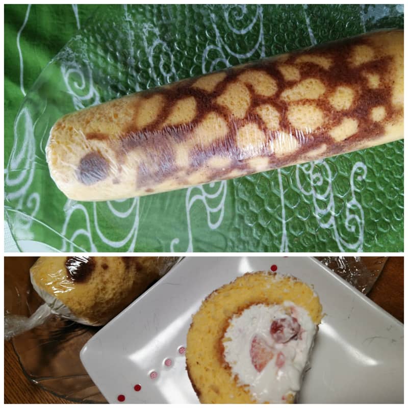 3)子供の日に。鯉のぼりのロールケーキ。自家製イチゴジャム入り。