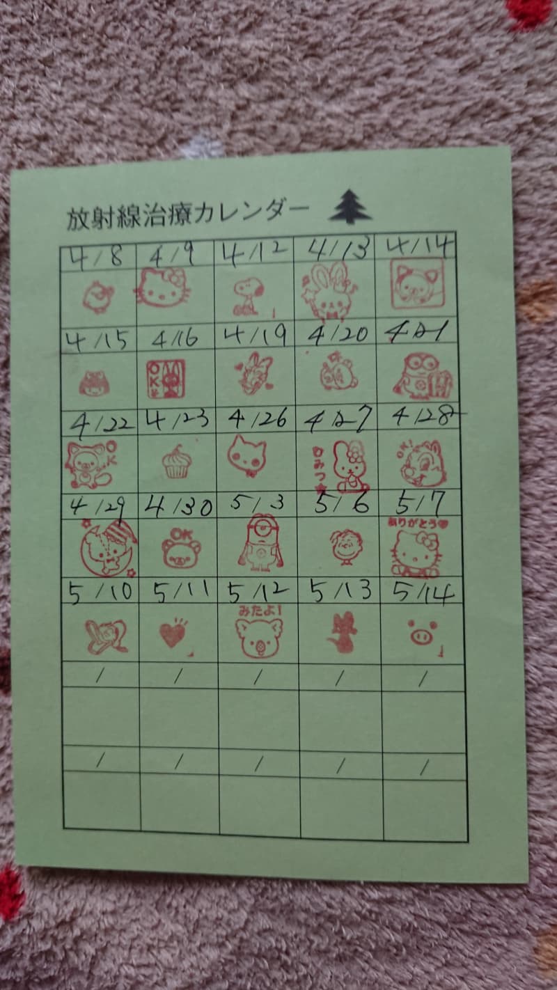 治療カードに毎回違うかわいいスタンプ。とうとう最後まで重なることはなくて楽しく通えました。