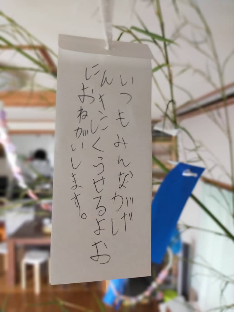 子供達はたくさんのお願い事を短冊に書いています。  何枚書くの(笑)と思ったけど希望のままに?短冊をその都度準備