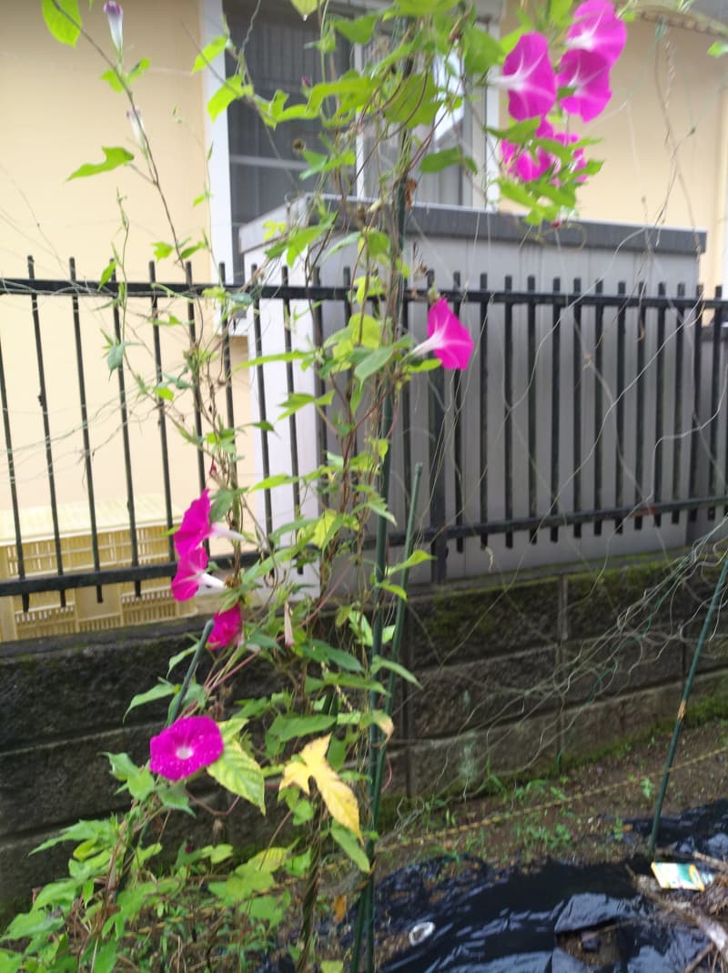 帰宅すると庭の朝顔は猛暑のなかでも元気。