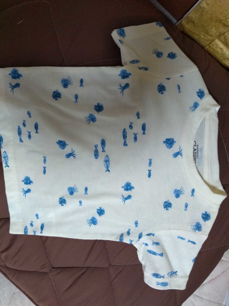 西松屋で夏物最終セールで買った99円のTシャツ(サイズ80が目安とのこと。80サイズを買うなんて、なんか我が子が赤ちゃんの時を思い出してしみじみしちゃいました^^)。
