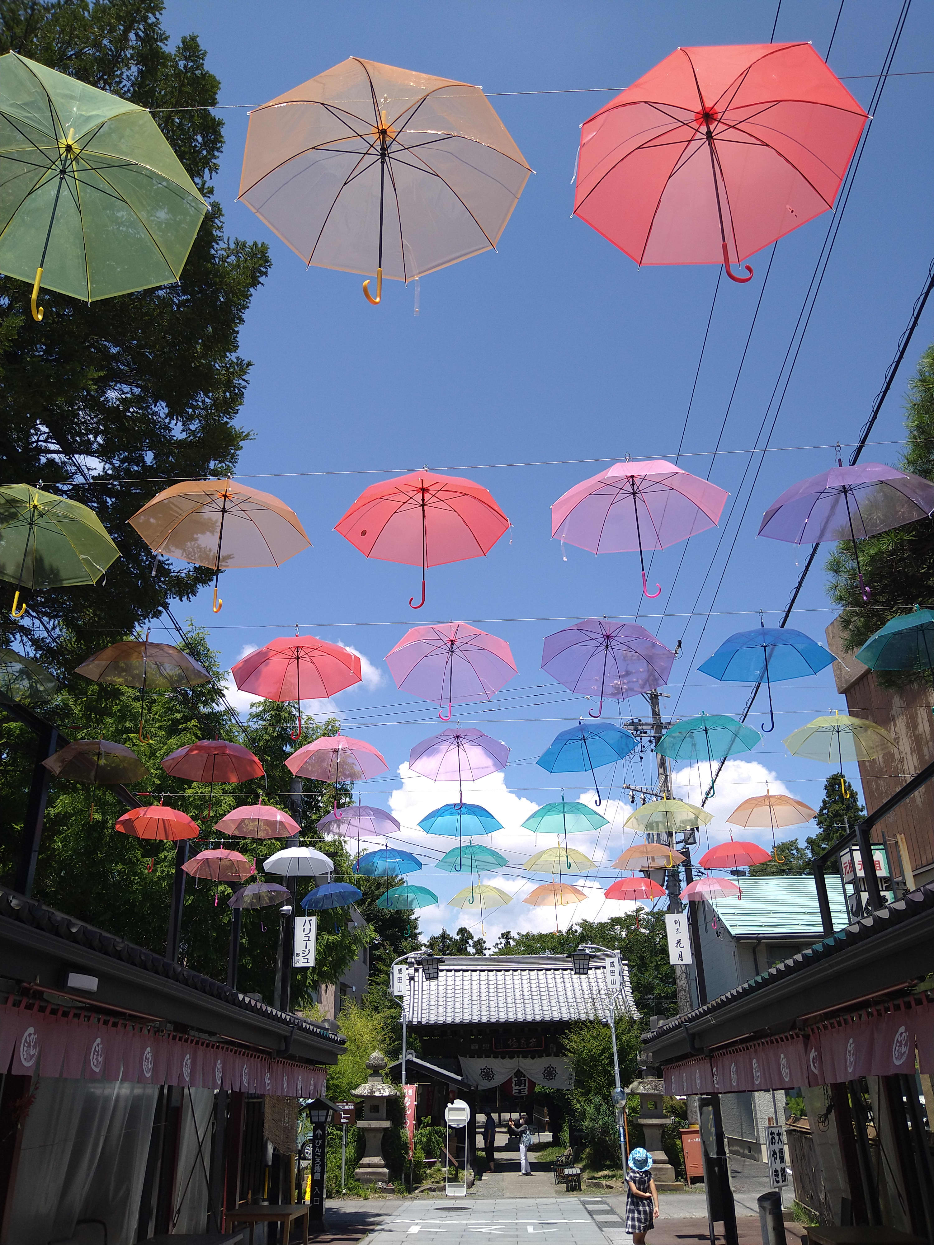 うちの近くにある「ぴんころ地蔵」というところの参道なんですが、少し前からアンブレラスカイをやっていてなんだかウキウキしちゃいます
