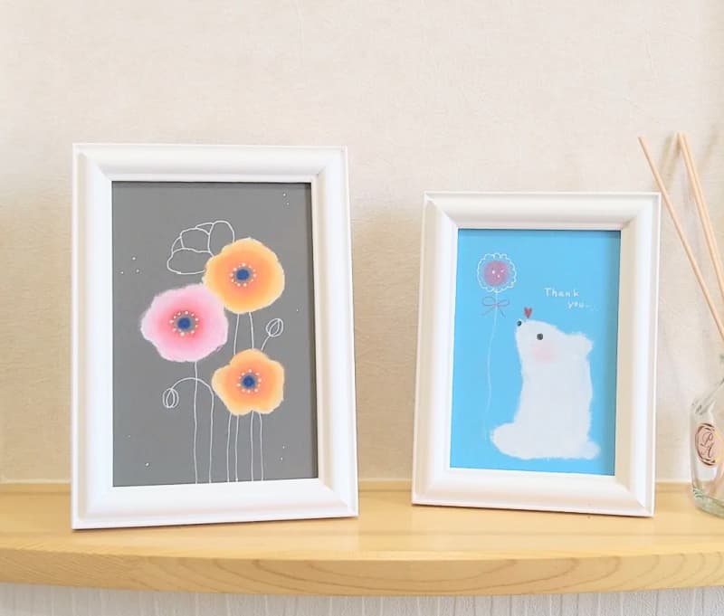 二枚目 チョークアートのワークショップで娘と作りました。指でぼかすのが難しいんですが楽しかったです☆