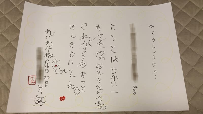 息子から表彰状を貰いました!涙腺崩壊です。
