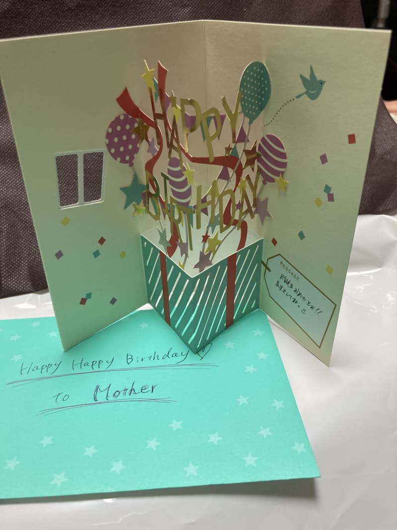肺がんと診断されて5回目の誕生日を迎えました♪ その度に娘たちからプレゼントをもらいました。 告知された後 最初のお誕生日プレゼントには、『いつもたくさんのありがとう これからも幸せな時が過ごせますように』だった。 今年は、『長生きしてね』❗️ 5年前は、2人共 5年後生きていない!と思っていたメッセージだったと思う。でも、今は元気に過ごしていることから、娘より長生きしたりして‼️ なんて冗談を言うまでに。 それぞれにプレゼントを選んでくれた? 半分、自分も使用したいものを選んでいる… それでも、とっても嬉しい? 誕生日には仕事を休みにしているが、今年はどうしても休めない状況で、仕方なく仕事をした… 家に帰ると娘が晩御飯を準備し、ケーキ? プレゼント? 嬉しい日になった? 娘たち ありがとう❣️ 年末の頭部MRは異常なく、ファーストラインのアレセンサが効いて、原発腫瘍 縮小維持できている? また来年の誕生日を楽しみに、明日から自分らしく生きます❣️