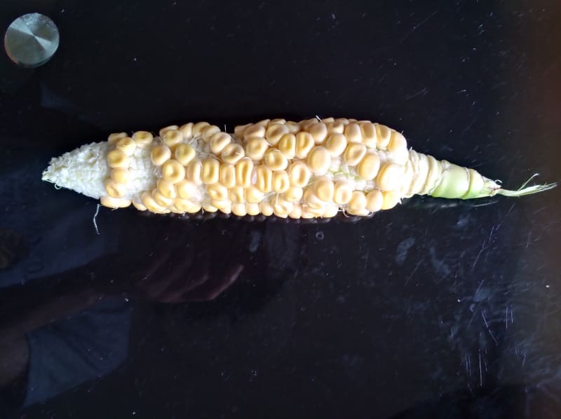 とうもろこしを初収穫! しかし皮をむいてみると… 粒はバラバラで、思ってたより小さい。 粒が揃った物を作るのって難しいんだなぁ。農家さんはきっと色々試して手をかけてるんだなぁ。 味は甘くておいしかった???