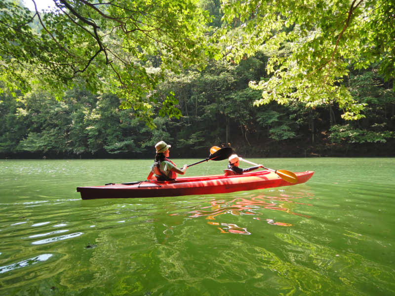 ずっーとやりたいと思っていたカヌー。 子供たちに 「ねぇ、こういうのやってみたくない?」 と聞いてみると 「いいねえ」と無事賛同いただき申し込んでみた。 ちょうどスタート時間から雨予報だったけど、薄曇りで雨は降らず。雨女返上か? なーんにも考えず湖上に浮かんでると、 体の中の毒素がすーっと抜けていく感じ。 このままぼーっとしてたい気分だったが 前に乗っている次男から 「こら!漕ぐのさぼんな!」 と激がとぶ。き、きびしい… 湖岸には紅葉がたくさんあり、 秋もいいだろうなぁ。 やりたいことはガンガンやっていこう。